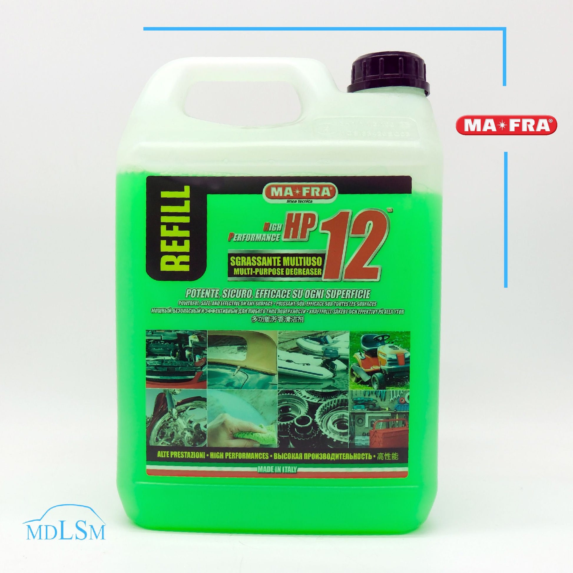 HP 12, sgrassatore universale multiuso super concentrato ad alte prestazioni, il meglio della tecnologia Mafra applicata alla moderna detergenza, è il più innovativo fra gli sgrassanti tecnici multiuso. Potente, rapido e ad ampio spettro di utilizzo, offre prestazioni imbattibili su qualsiasi tipo di superficie, in tutta sicurezza grazie al suo pH bilanciato. Con HP 12 riuscirete a risolvere facilmente e in modo straordinariamente efficace ogni problema di sgrassaggio e detergenza intensiva a 360°. Questo straordinario prodotto, utilizzato con grande soddisfazione dai principali team di motorsport, dà il meglio di sé su sporchi difficili in auto, garage, imbarcazioni, moto, camper e anche in casa.