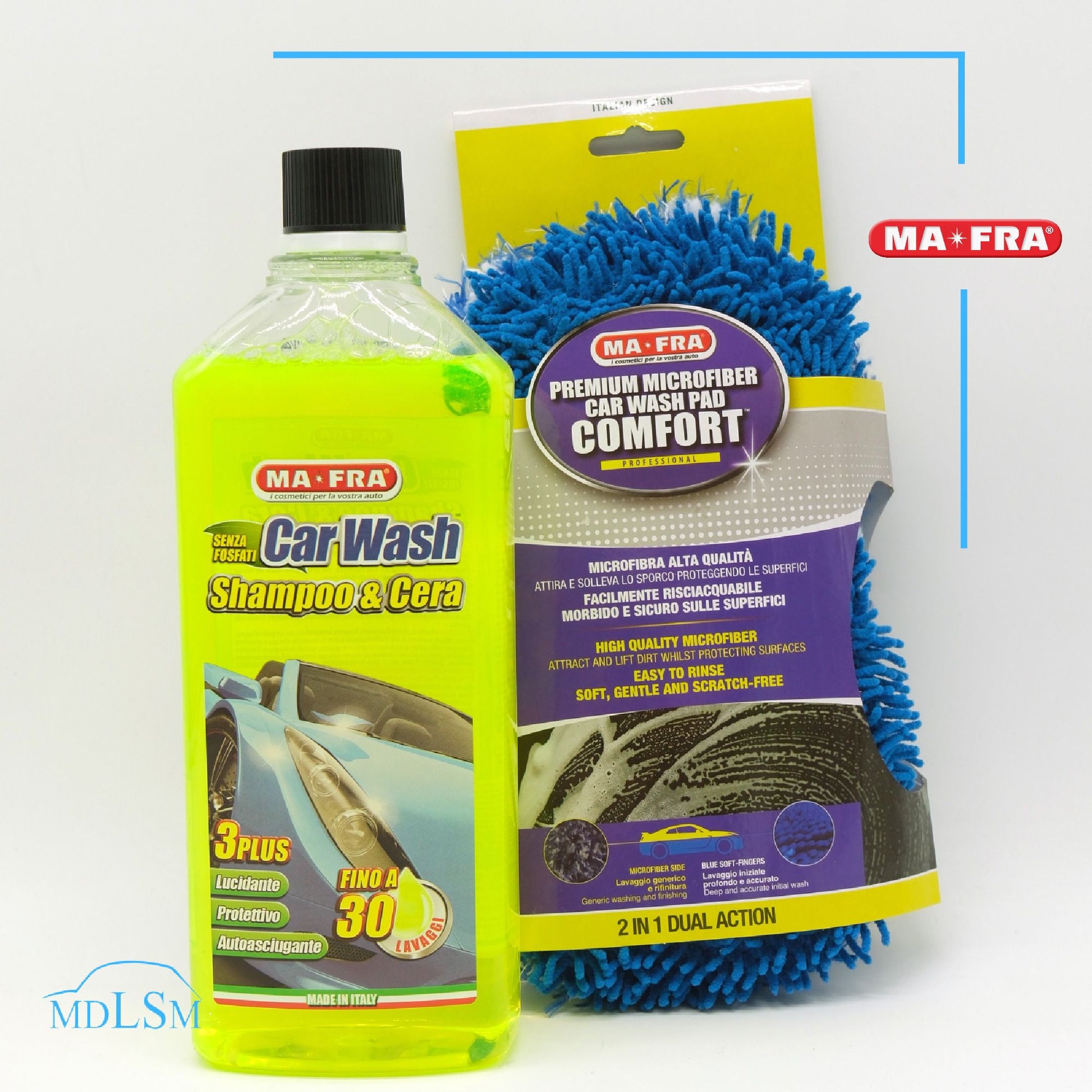 MAFRA KIT LAVAGGIO AUTO SHAMPOO E CERA 1L - SPUGNA IN MICROFIBRA PAD COMFORT