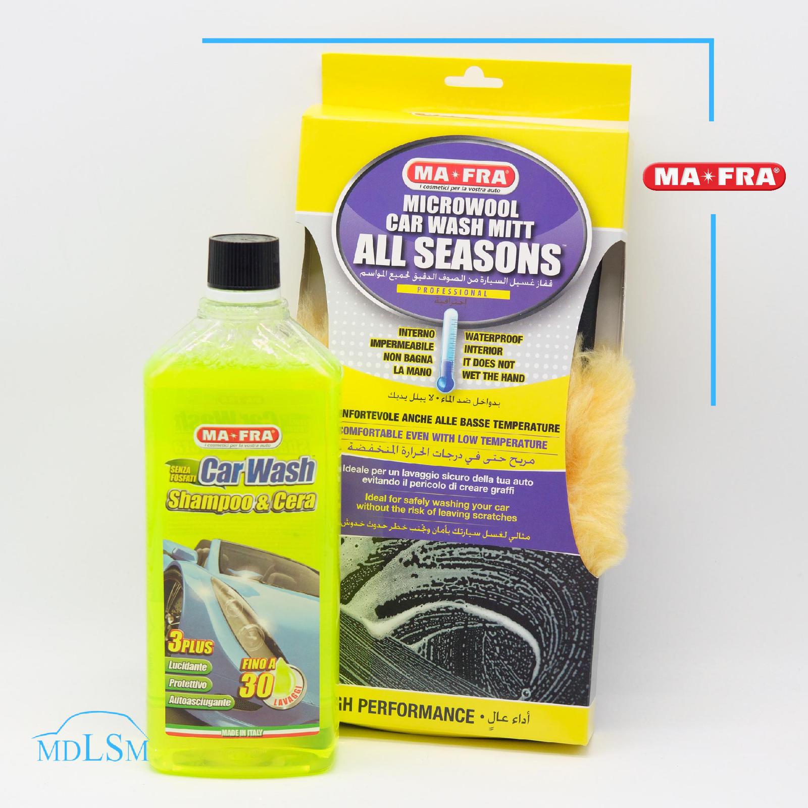 MAFRA KIT LAVAGGIO AUTO SHAMPOO E CERA + GUANTO IN LANA ALL SEASONS IMPERMEABILE