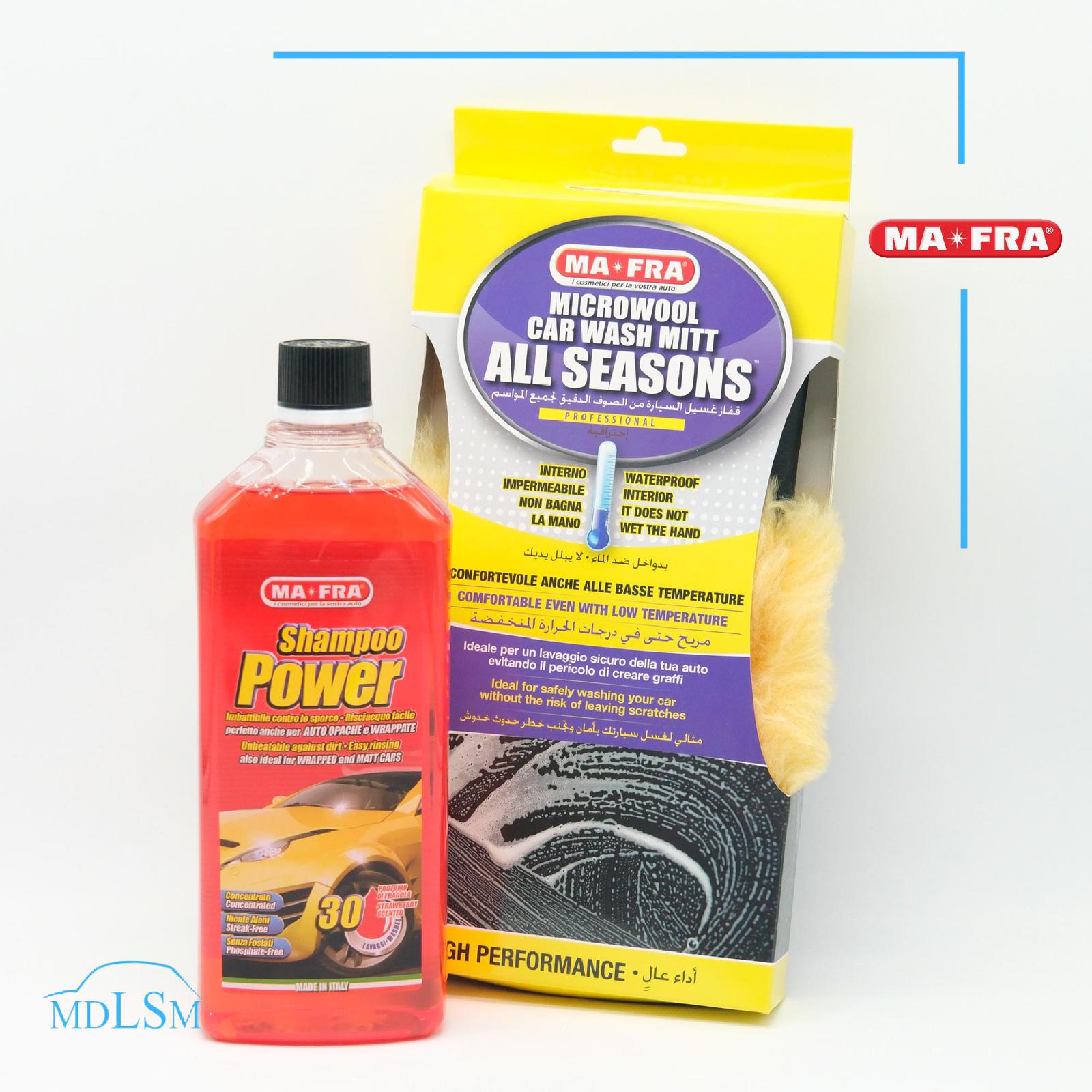 MAFRA KIT LAVAGGIO AUTO SHAMPOO POWER + GUANTO IN LANA ALL SEASONS IMPERMEABILE