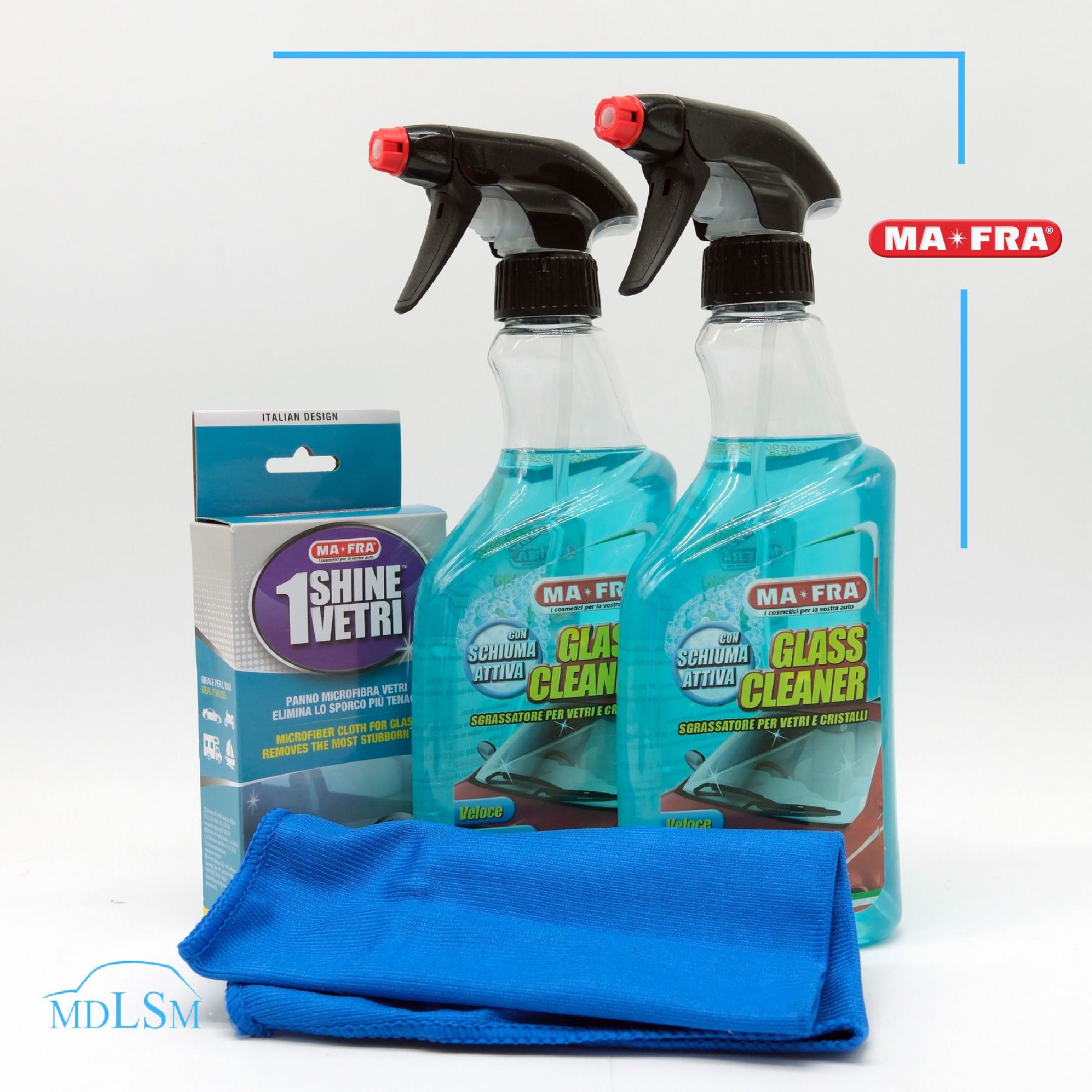 MAFRA KIT LAVAGGIO VETRI - GLASS CLEANER X2 + 1SHINE VETRI PANNO IN MICROFIBRA