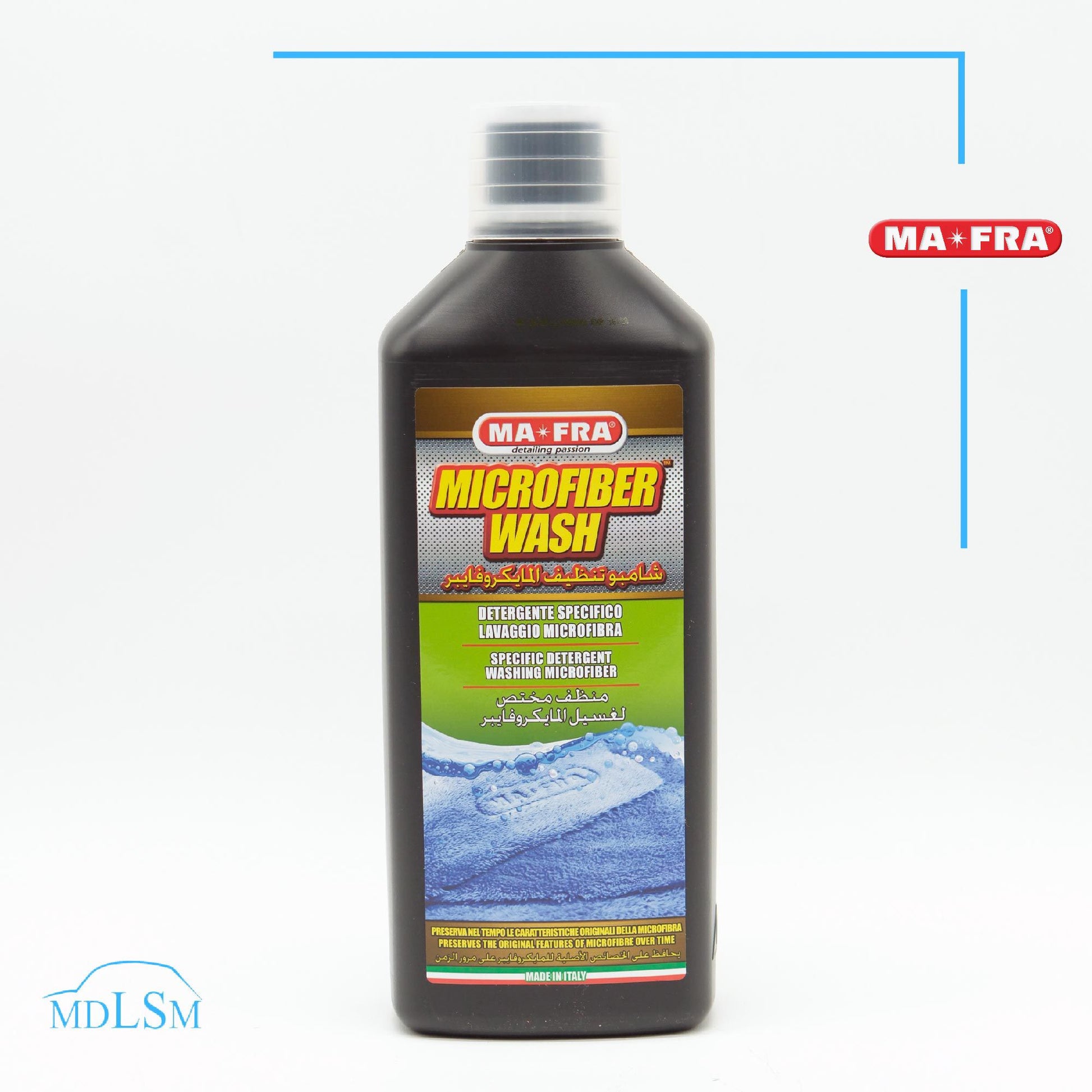 La microfibra è un elemento fenomenale per la cura e la manutenzione di ogni particolare interno ed esterno della vettura. Tuttavia, anche i migliori panni in microfibra in commercio potrebbero perdere le loro proprietà: dopo diversi usi e lavaggi le fibre potrebbero diventare più dure e le prestazioni generali del panno potrebbero calare vistosamente così come la loro sicurezza di impiego su superfici delicate. Mafra Microfiber Wash è in grado di pulire a fondo la microfibra, eliminando i residui di polish, compound e cera ma con il massimo rispetto dei materiali: un uso continuo permetterà di conservare al meglio i panni ed assicurarsi una funzionalità pari al nuovo e senza lasciare alcun tipo di residuo sulla superficie Il prodotto non contiene ammorbidenti o tensioattivi cationici che possono alterare le performance del panno.